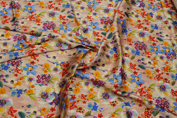 Шелк атлас стрейч (н) цветочный рисунок на розово-бежевом - цена 4 800 ₽ У нас самые доступные цены на Шелк набивной в Москве, доставка по всей России - интернет магазин тканей Тессутидея. Артикул товара для заказа - 10-3425. Страна производства ткани – Италия. Ширина этого материала - 135. Состав - Шелк 95% эластан 5%. Наличие остатков на складе - 7.5 м