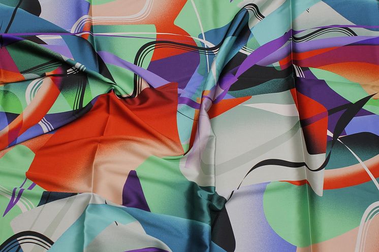 Шелк атлас стрейч (н) яркая геометрическая абстракция - цена 4 800 ₽ У нас самые доступные цены на в Москве, доставка по всей России - интернет магазин тканей Тессутидея. Артикул товара для заказа - 10-3427. Страна производства ткани – Италия. Ширина этого материала - 140. Состав - Шелк 95% эластан 5%. Наличие остатков на складе - 6.5 м