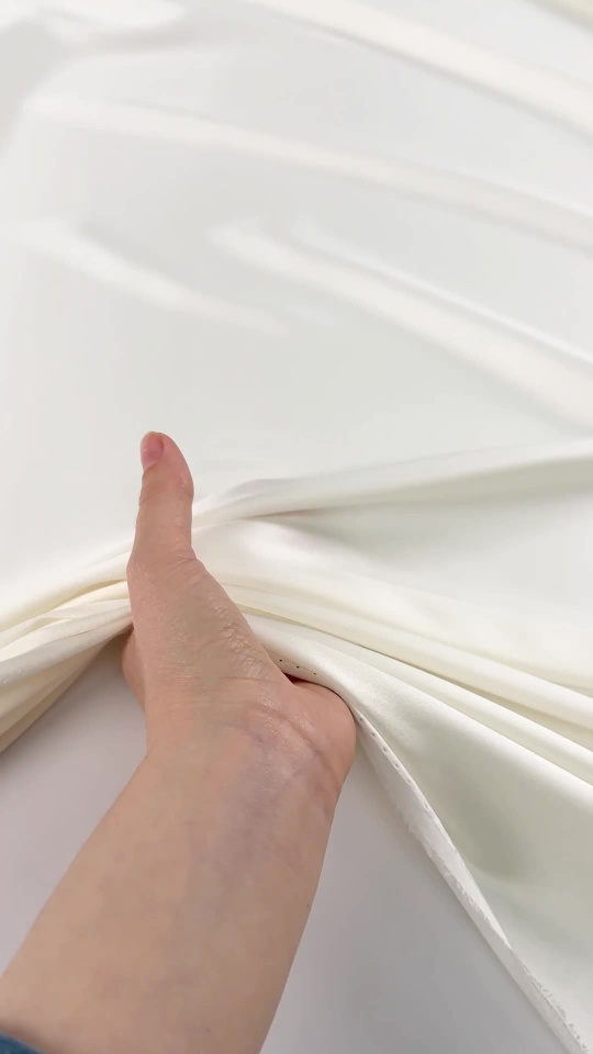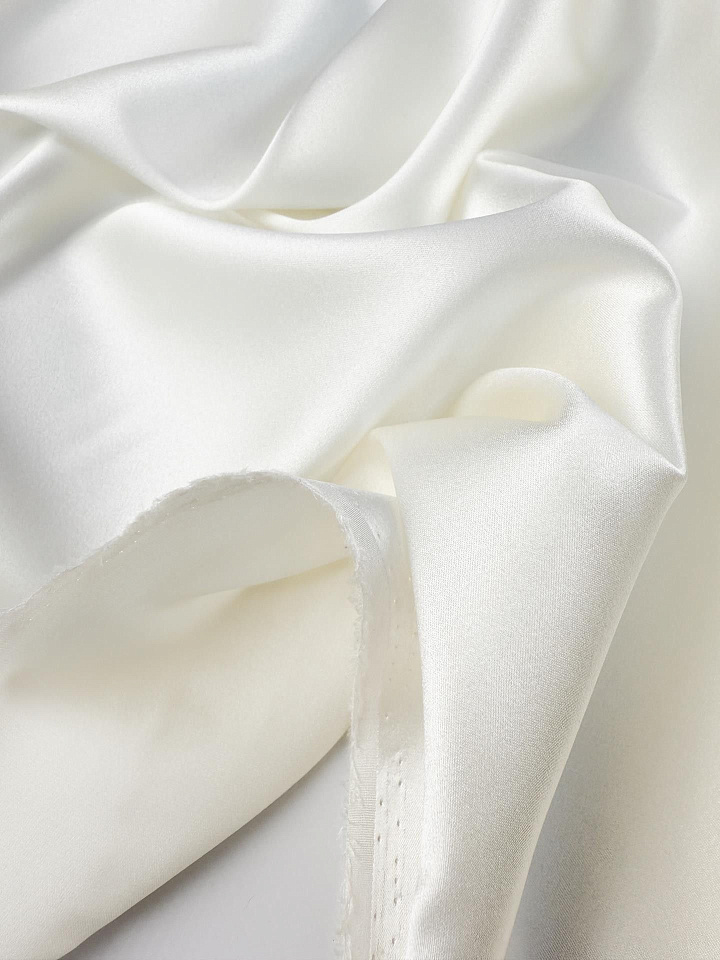 Шелк атлас стрейч (о) айвори - цена 4 200 ₽ У нас самые доступные цены на в Москве, доставка по всей России - интернет магазин тканей Тессутидея. Артикул товара для заказа - 10-4112. Страна производства ткани – Италия. Ширина этого материала - 135. Состав - Шелк 95% эластан 5%. Наличие остатков на складе - 7.3 м