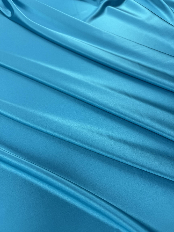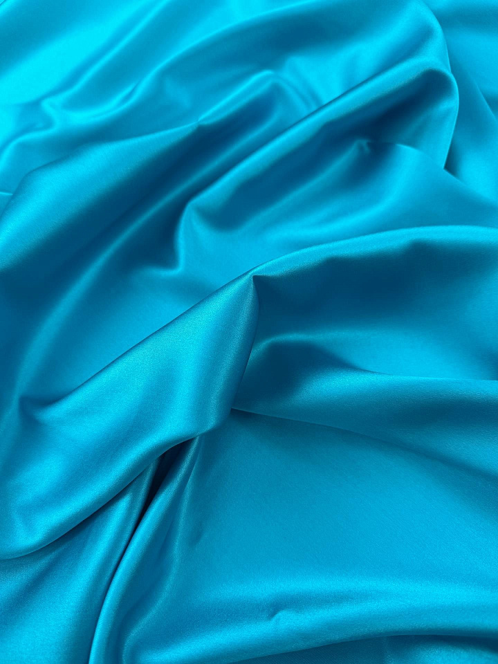Шелк атлас стрейч (о) ярко-бирюзовый - цена 4 800 ₽ У нас самые доступные цены на в Москве, доставка по всей России - интернет магазин тканей Тессутидея. Артикул товара для заказа - 10-4818. Страна производства ткани – Италия. Ширина этого материала - 140. Состав - Шелк 96% эластан 4%. Наличие остатков на складе - 25 м