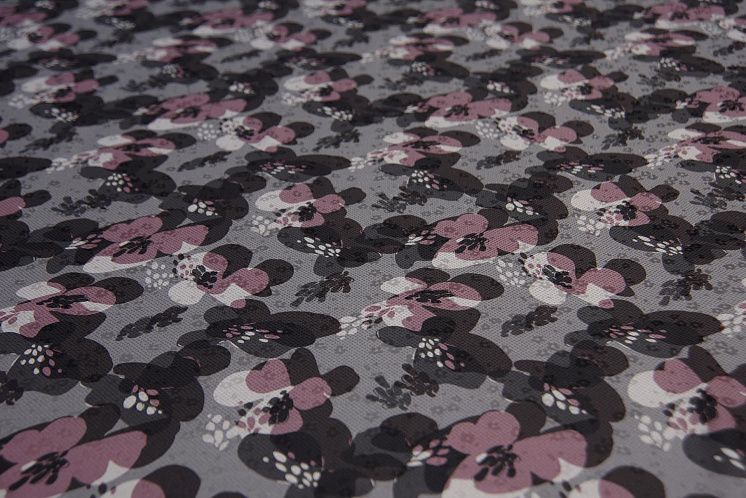 Шелк дама (н) черно-серо-розовая цветочная абстракция Арт. 10-1663