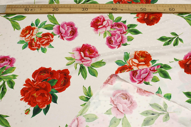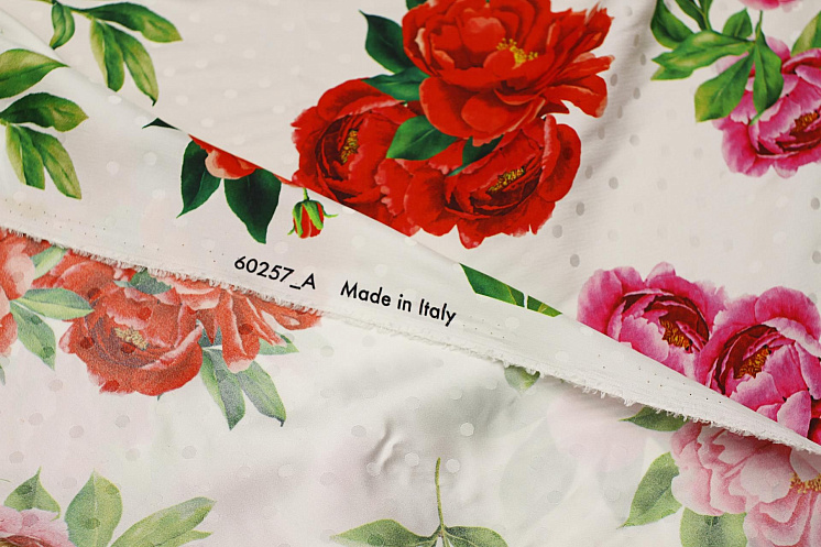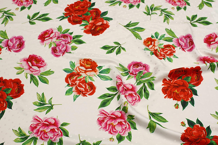 Шелк дама (н) красно-розовый цветочный рисунок и горох на белом - цена 7 200 ₽ У нас самые доступные цены на в Москве, доставка по всей России - интернет магазин тканей Тессутидея. Артикул товара для заказа - 10-3670. Страна производства ткани – Италия. Ширина этого материала - 140. Состав - Шелк 100%. Наличие остатков на складе - 8 м