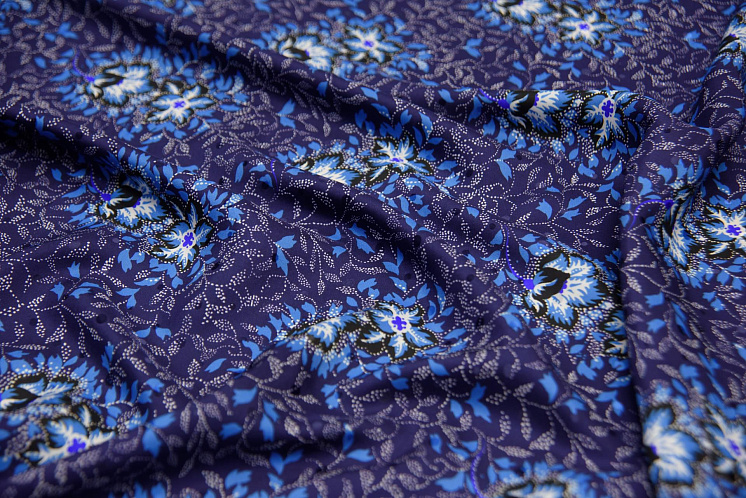 Шелк дама (н) растительный рисунок на темно-синем Арт. 10-1640