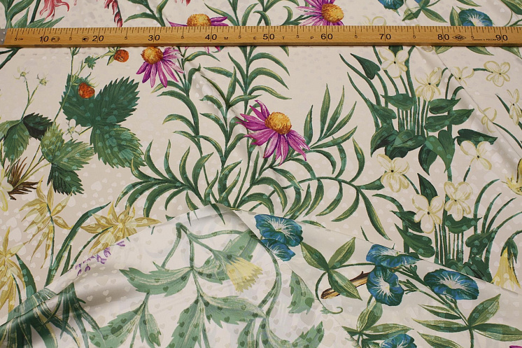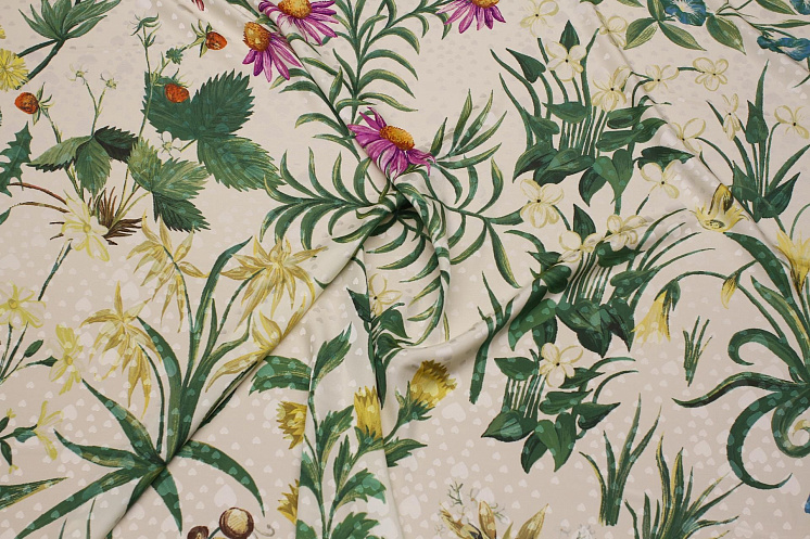 Шелк дама (н) ягодно-растительный рисунок и сердечки на айвори - цена 8 800 ₽ У нас самые доступные цены на Шелк набивной в Москве, доставка по всей России - интернет магазин тканей Тессутидея. Артикул товара для заказа - 10-4223. Страна производства ткани – Италия. Ширина этого материала - 150. Состав - Шелк 100%. Наличие остатков на складе - 7.9 м