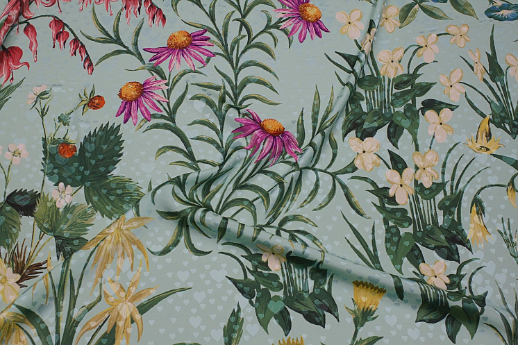 Шелк дама (н) ягодно-растительный рисунок и сердечки на тиффани - цена 8 800 ₽ У нас самые доступные цены на Шелк набивной в Москве, доставка по всей России - интернет магазин тканей Тессутидея. Артикул товара для заказа - 10-4222. Страна производства ткани – Италия. Ширина этого материала - 150. Состав - Шелк 100%. Наличие остатков на складе - 7.9 м