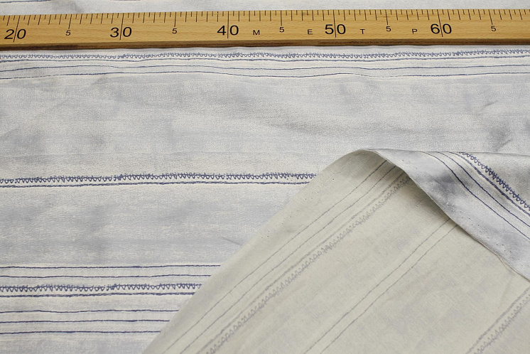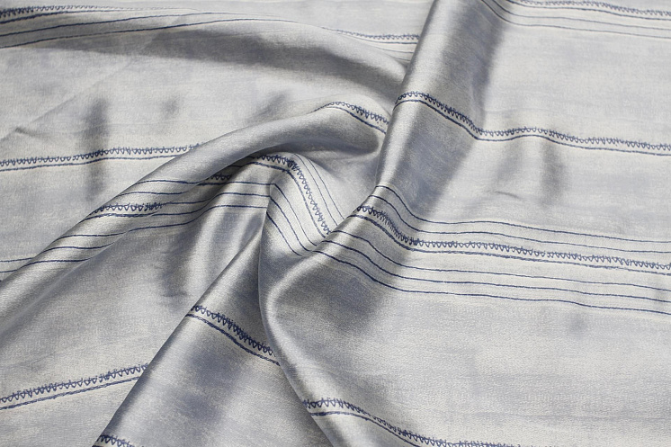 Шелк дюшес (н) бело-голубые стилизованные полосы Арт. 10-3599