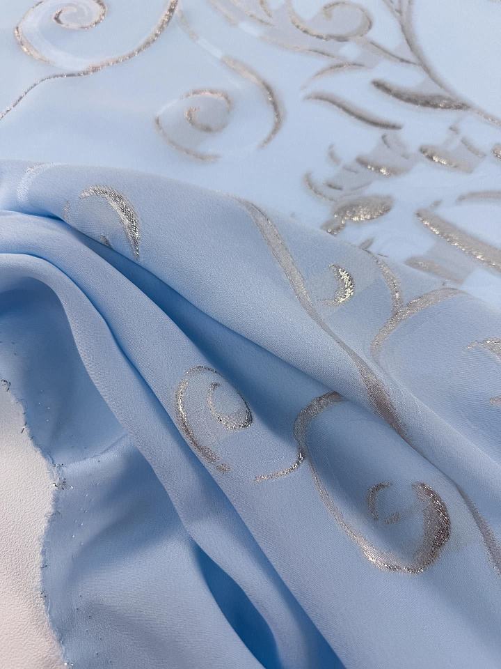 Шелк филькупе с люрексом (н) серебряный растительный рисунок на голубом - цена 7 200 ₽ У нас самые доступные цены на Шелк набивной в Москве, доставка по всей России - интернет магазин тканей Тессутидея. Артикул товара для заказа - 10-4727. Страна производства ткани – Италия. Ширина этого материала - 140. Состав - Шелк 75% люрекс 25%. Наличие остатков на складе - 5.7 м