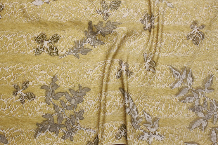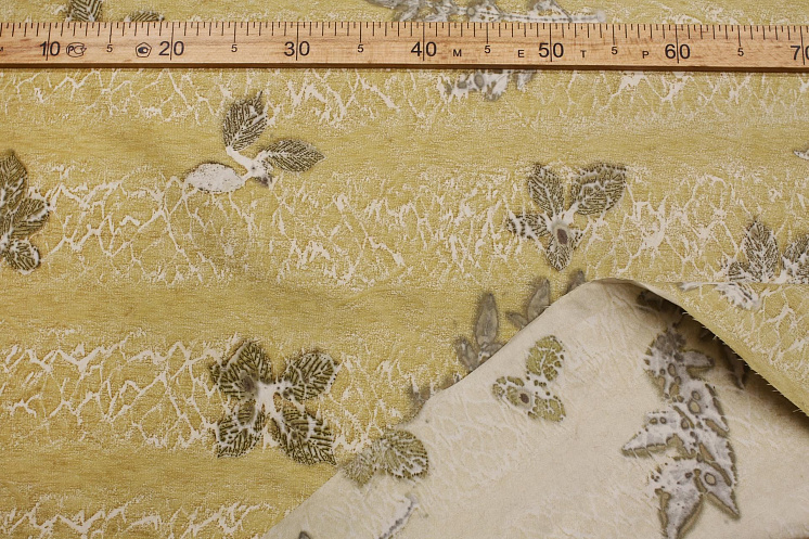 Шелк+хлопок батик ручная работа (н) растительная абстракция на бежево-горчичном меланже Арт. 10-4165