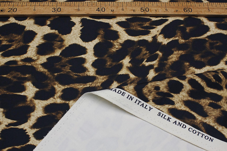 Шелк+хлопок кади (н) бежево-коричневый хищный принт - цена 5 200 ₽ У нас самые доступные цены на Шелк набивной в Москве, доставка по всей России - интернет магазин тканей Тессутидея. Артикул товара для заказа - 10-3838. Страна производства ткани – Италия. Ширина этого материала - 150. Состав - Шелк 50% хлопок 50%. Наличие остатков на складе - 2.9 м