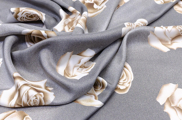Шелк (н) бежевые розы на сером меланже Moschino - цена 4 500 ₽ У нас самые доступные цены на Шелк набивной в Москве, доставка по всей России - интернет магазин тканей Тессутидея. Артикул товара для заказа - 02-8198. Страна производства ткани – Италия. Ширина этого материала - 140. Состав - Шелк 100%. Наличие остатков на складе - 5.2 м