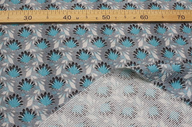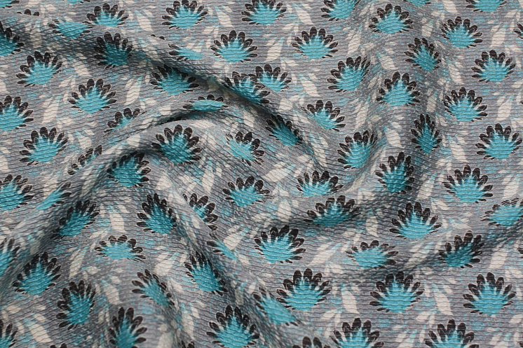 Шелк плиссе с люрексом (н) бирюзовый рисунок на сером Арт. 10-4129
