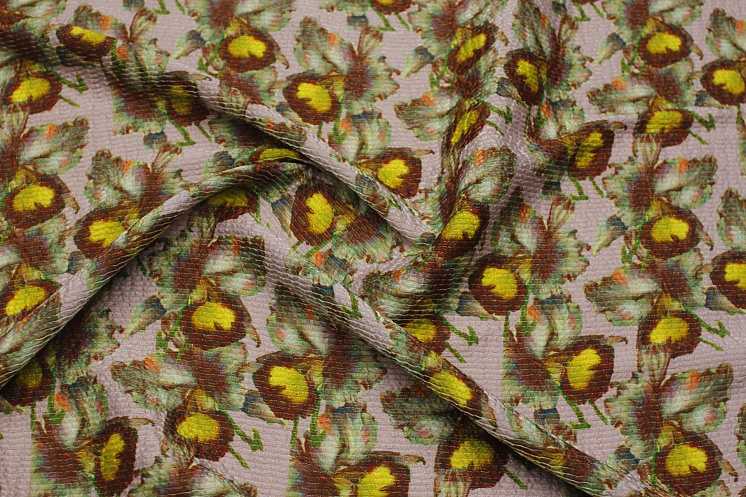 Шелк плиссе с люрексом (н) желто-терракотовый рисунок на серо-розовом Арт. 10-4130
