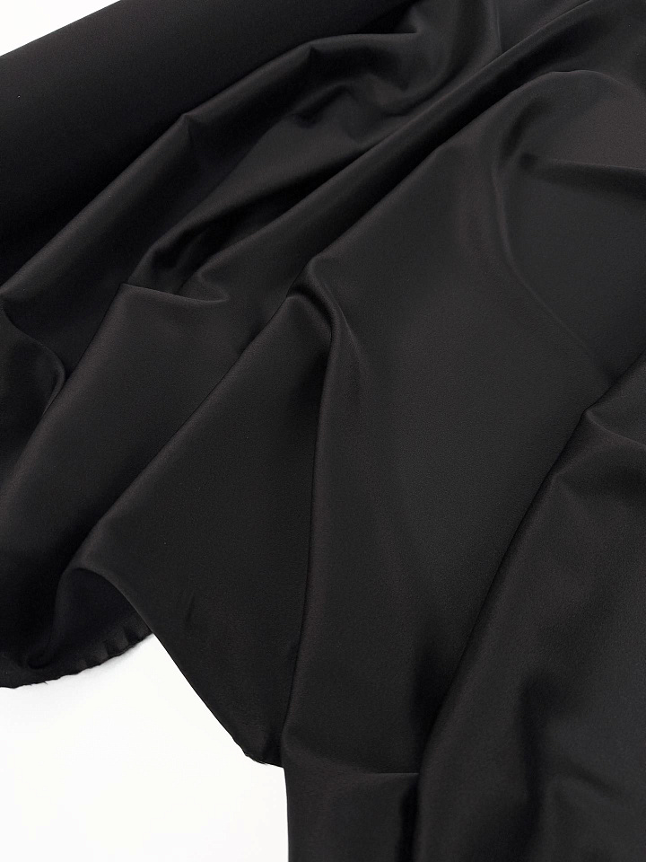 Шелк подкладочный стрейч (о) черный - цена 2 200 ₽ У нас самые доступные цены на в Москве, доставка по всей России - интернет магазин тканей Тессутидея. Артикул товара для заказа - 10-5004. Страна производства ткани – Италия. Ширина этого материала - 100. Состав - Шелк 96% эластан 4%. Наличие остатков на складе - 19.8 м