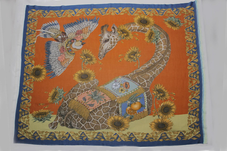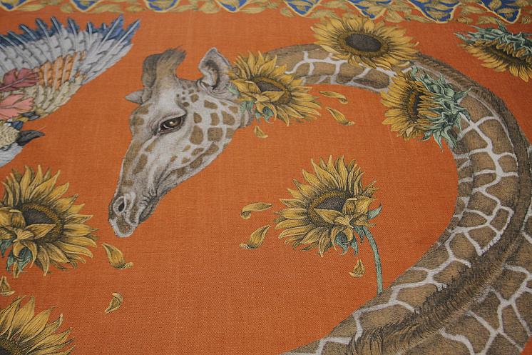 Шелк с хлопком купон-платок 135*135см жираф Арт. F-6227