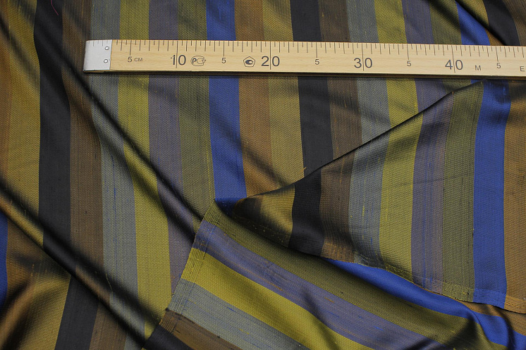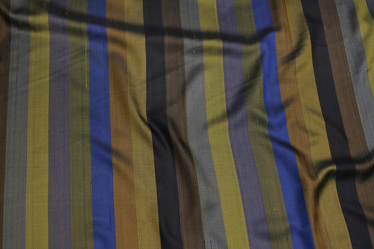Шелк шантунг (н) сине-черно-коричневые жаккардовые полосы Арт. 10-3189