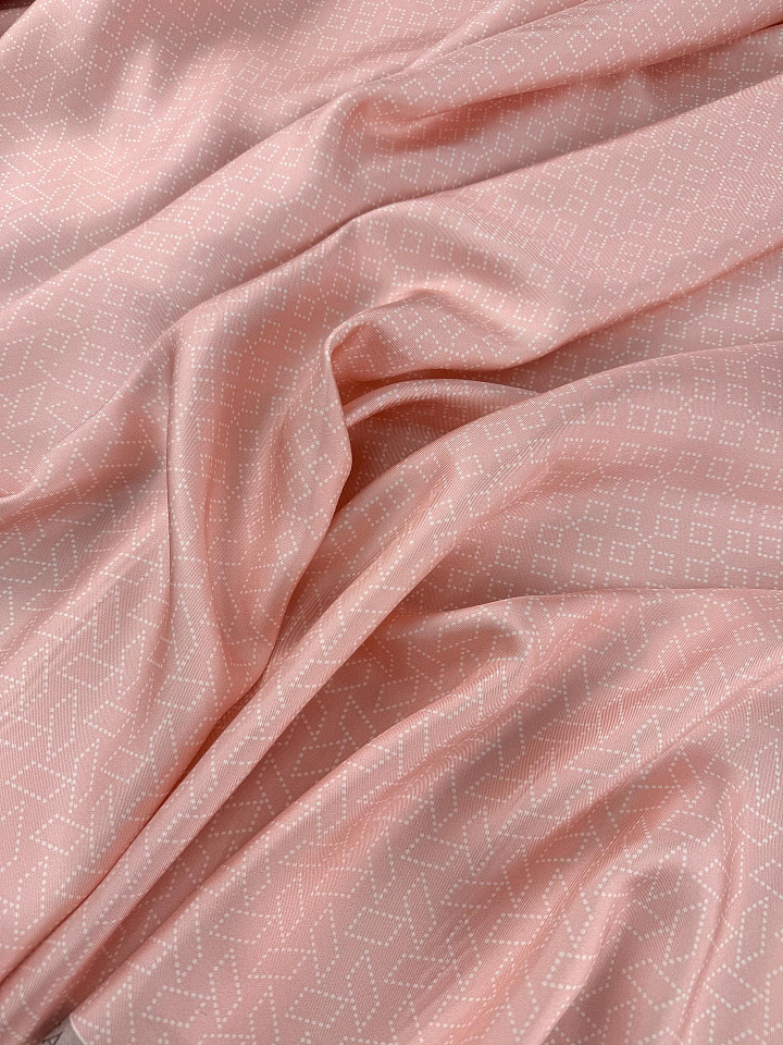 Шелк твил (н) белый геометрический рисунок на светло-розовом Арт. 10-5111