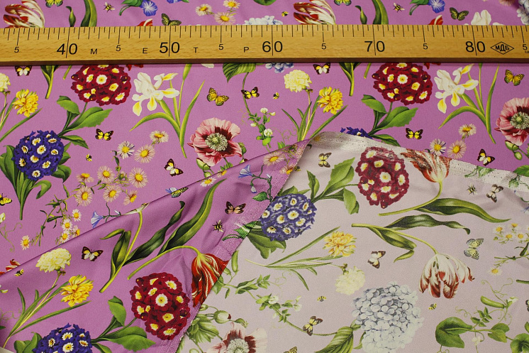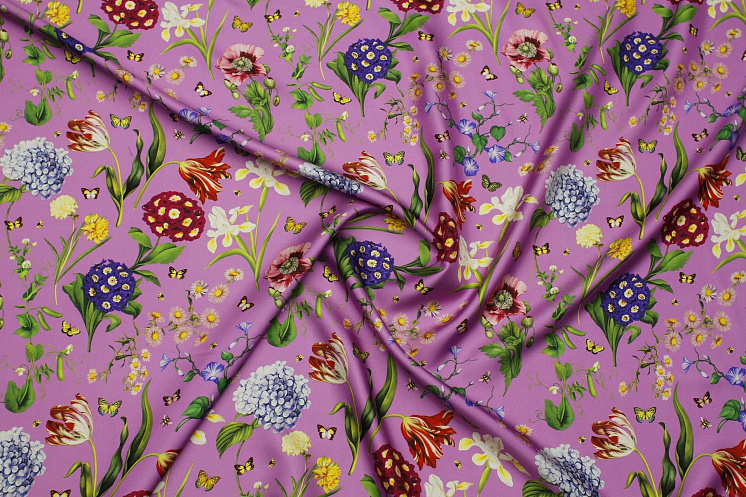 Шелк твил (н) цветочный рисунок и насекомые на сиреневом - цена 7 200 ₽ У нас самые доступные цены на Шелк набивной в Москве, доставка по всей России - интернет магазин тканей Тессутидея. Артикул товара для заказа - 10-4218. Страна производства ткани – Италия. Ширина этого материала - 140. Состав - Шелк 100%. Наличие остатков на складе - 7.2 м