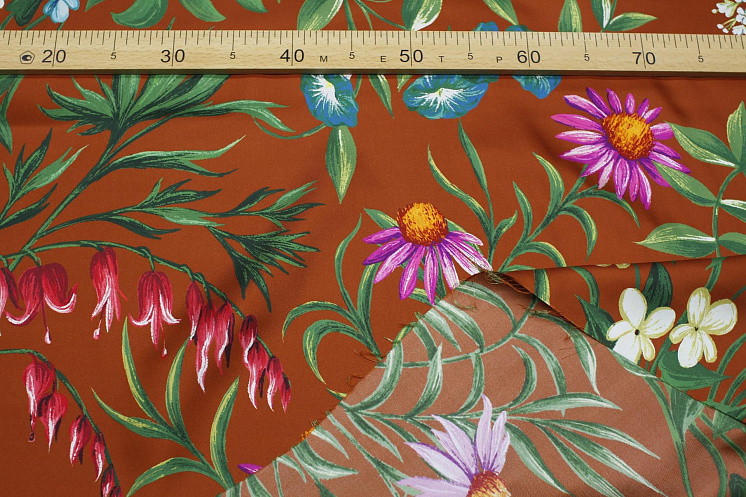 Шелк твил (н) ягодно-растительный рисунок на терракотовом Арт. 10-4220