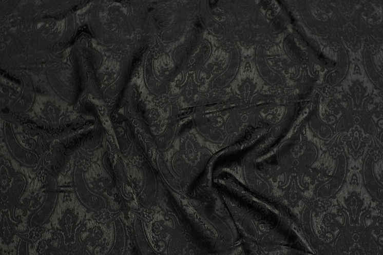 Шелк+вискоза жаккард (о) пейсли на черном - цена 4 500 ₽ У нас самые доступные цены на Шелк однотонный в Москве, доставка по всей России - интернет магазин тканей Тессутидея. Артикул товара для заказа - 10-4594. Страна производства ткани – Италия. Ширина этого материала - 130. Состав - Шелк 50% вискоза 50%. Наличие остатков на складе - 4.7 м