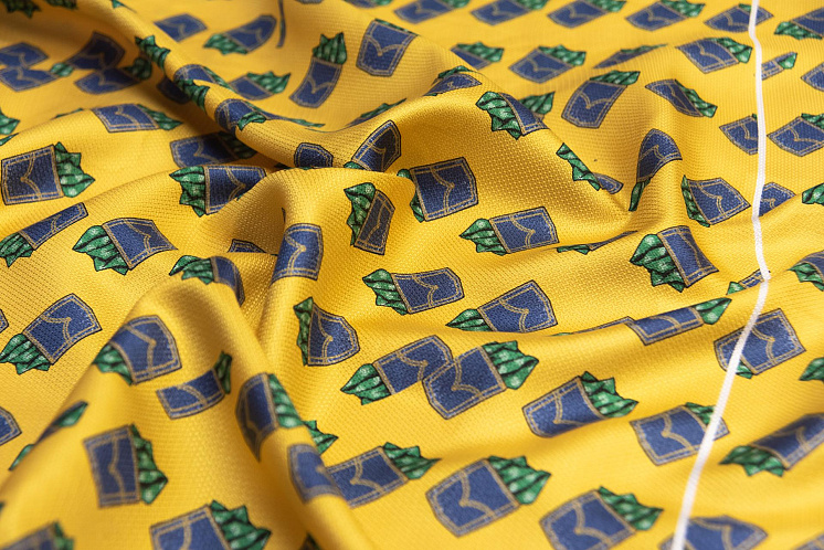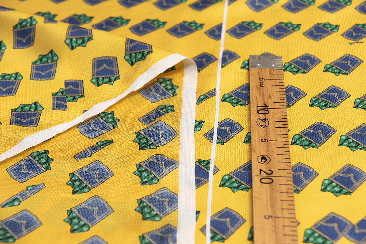 Шелк жаккард купон (0,95м) (н) карманы с платком на желтом - цена 1 200 ₽ У нас самые доступные цены на Шелк набивной в Москве, доставка по всей России - интернет магазин тканей Тессутидея. Артикул товара для заказа - 10-1392. Страна производства ткани – Италия. Ширина этого материала - 100. Состав - Шелк 100%. Наличие остатков на складе - 1.09 м