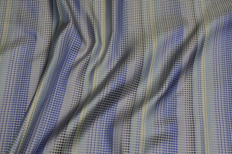 Шелк жаккард (н) сине-голубые полосы из стилизованного гороха - цена 3 200 ₽ У нас самые доступные цены на Шелк набивной в Москве, доставка по всей России - интернет магазин тканей Тессутидея. Артикул товара для заказа - 10-3244. Страна производства ткани – Италия. Ширина этого материала - 145. Состав - Шелк 100%. Наличие остатков на складе - 1.6 м