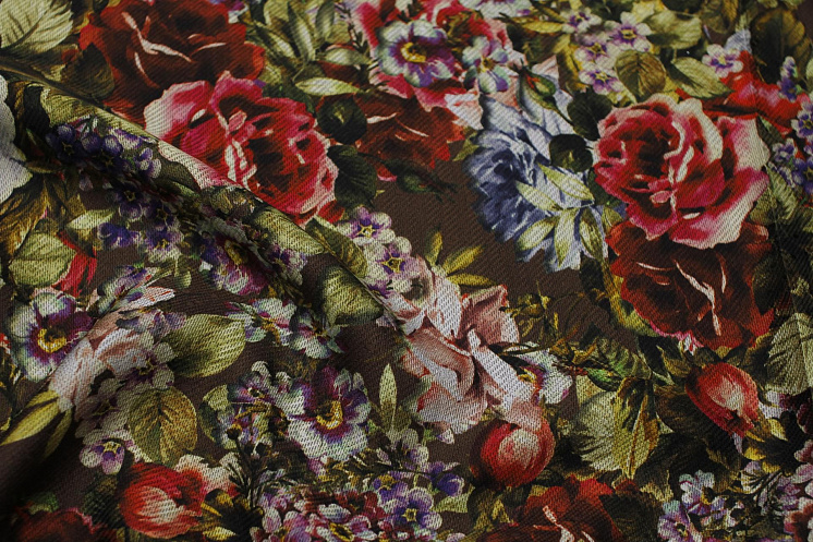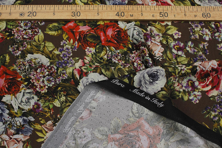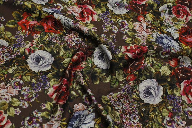 Шелк жаккард (н) цветочный рисунок на темно-коричневом - цена 6 400 ₽ У нас самые доступные цены на Жаккард в Москве, доставка по всей России - интернет магазин тканей Тессутидея. Артикул товара для заказа - 10-3799. Страна производства ткани – Италия. Ширина этого материала - 140. Состав - Шелк 100%. Наличие остатков на складе - 16 м