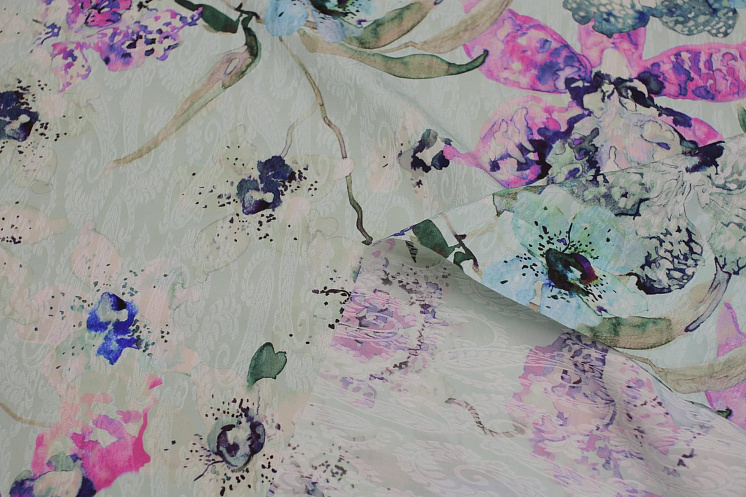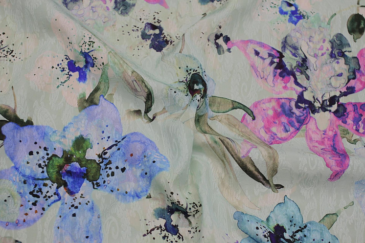 Шелк жаккард (н) яркий цветочный рисунок на мятном - цена 5 800 ₽ У нас самые доступные цены на Шелк набивной в Москве, доставка по всей России - интернет магазин тканей Тессутидея. Артикул товара для заказа - 10-3221. Страна производства ткани – Италия. Ширина этого материала - 145. Состав - Шелк 100%. Наличие остатков на складе - 1 м