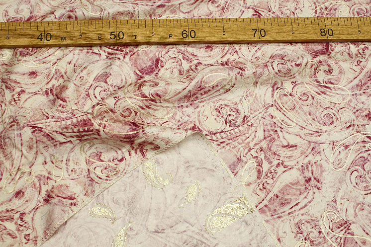 Шелк жаккард с люрексом (н) бело-бордовые пейсли - цена 7 800 ₽ У нас самые доступные цены на Шелк набивной в Москве, доставка по всей России - интернет магазин тканей Тессутидея. Артикул товара для заказа - 10-3908. Страна производства ткани – Италия. Ширина этого материала - 140. Состав - Шелк 100%. Наличие остатков на складе - 1.9 м