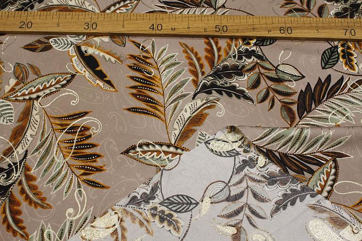 Шелк жаккард с люрексом (н) растительный рисунок на бежевом Арт. 10-3903