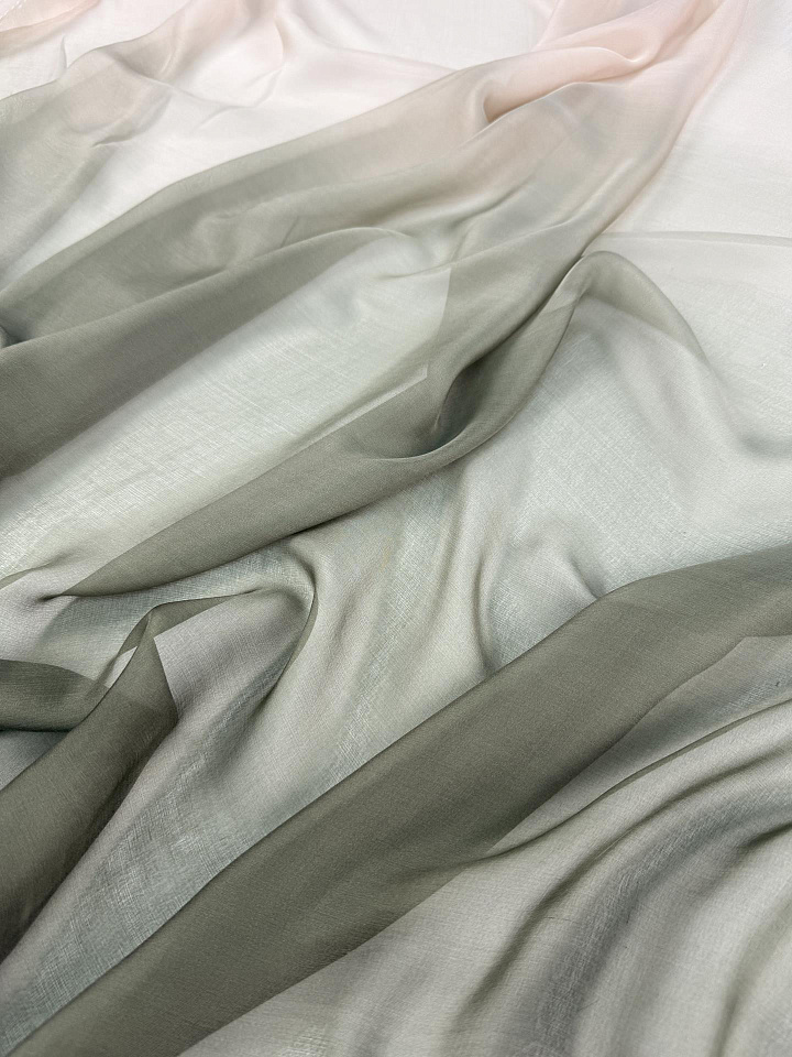 Шифон деграде (о) бежево-зеленый - цена 3 500 ₽ У нас самые доступные цены на в Москве, доставка по всей России - интернет магазин тканей Тессутидея. Артикул товара для заказа - 10-5101. Страна производства ткани – Италия. Ширина этого материала - 130. Состав - Шелк 100%. Наличие остатков на складе - 10.8 м