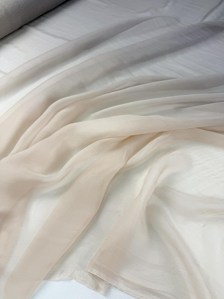 Шифон деграде (о) серо-бежевый - цена 3 500 ₽ У нас самые доступные цены на в Москве, доставка по всей России - интернет магазин тканей Тессутидея. Артикул товара для заказа - 10-5100. Страна производства ткани – Италия. Ширина этого материала - 130. Состав - Шелк 100%. Наличие остатков на складе - 11.2 м