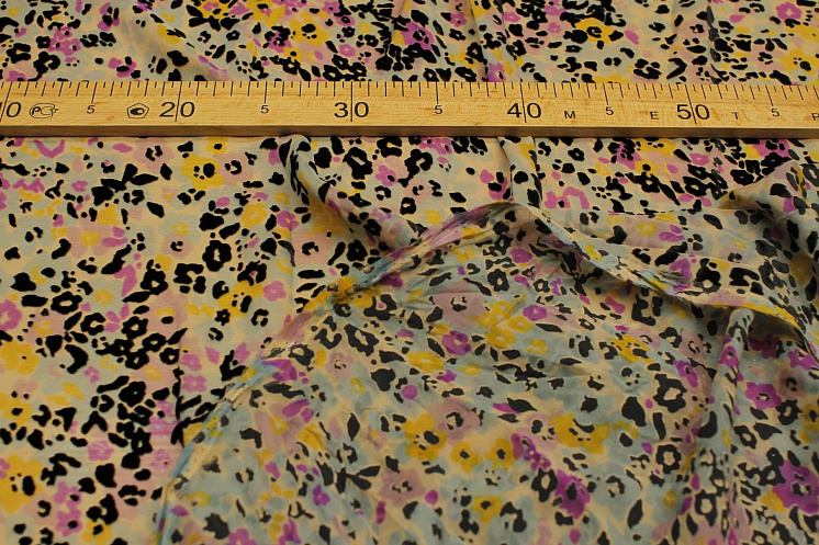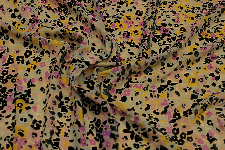 Шифон деворе (н) черно-желто-розовый рисунок на бежевом Арт. 10-3347