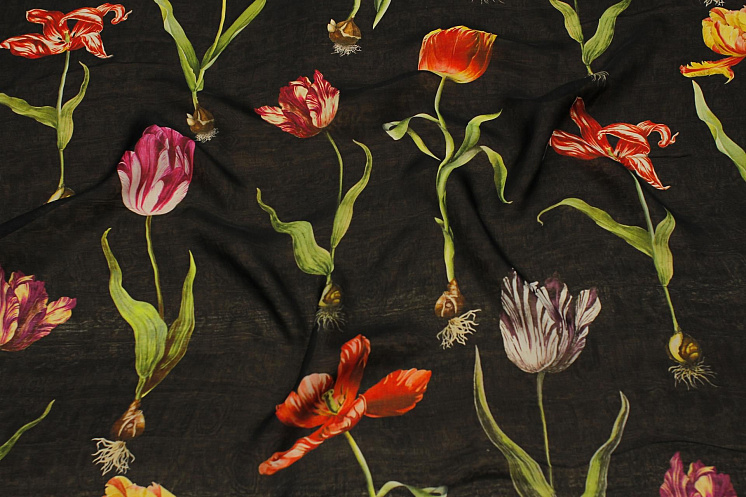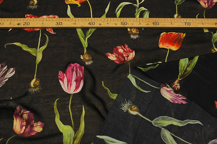 Шифон двухслойный (н) цветы на черном - цена 4 500 ₽ У нас самые доступные цены на Шифон в Москве, доставка по всей России - интернет магазин тканей Тессутидея. Артикул товара для заказа - 10-3361. Страна производства ткани – Италия. Ширина этого материала - 145. Состав - Шелк 100%. Наличие остатков на складе - 1.9 м