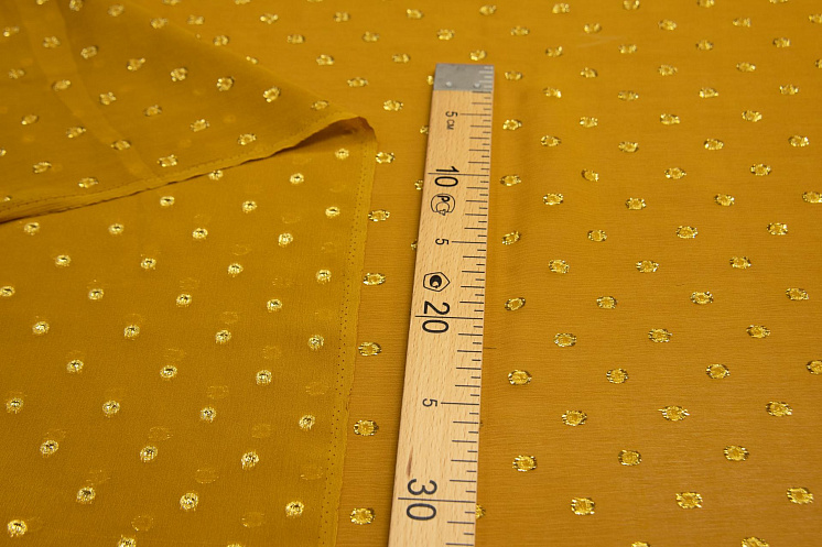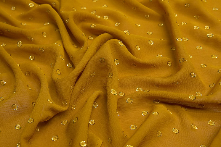 Шифон крэш с люрексом (н) золотой горох на охре - цена 2 800 ₽ У нас самые доступные цены на Шифон в Москве, доставка по всей России - интернет магазин тканей Тессутидея. Артикул товара для заказа - 02-9047. Страна производства ткани – Италия. Ширина этого материала - 110. Состав - Шелк 85% люрекс 15%. Наличие остатков на складе - 4.8 м