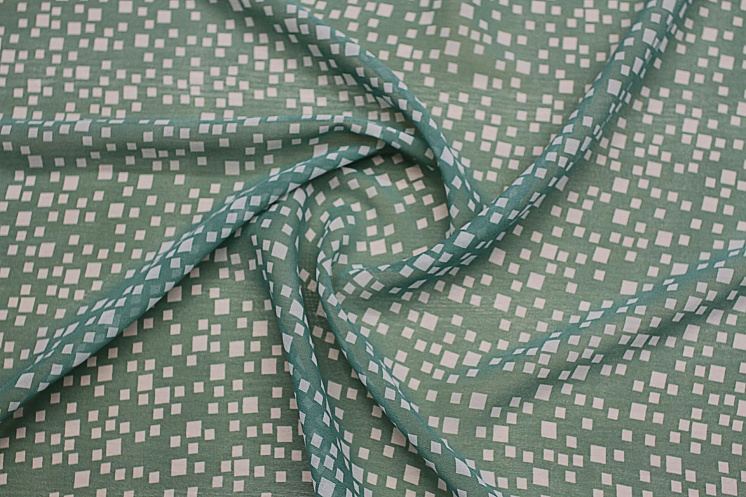 Шифон (н) белые стилизованные квадраты на светло-зеленом - цена 2 800 ₽ У нас самые доступные цены на Шифон в Москве, доставка по всей России - интернет магазин тканей Тессутидея. Артикул товара для заказа - 10-3954. Страна производства ткани – Италия. Ширина этого материала - 135. Состав - Шелк 100%. Наличие остатков на складе - 11.8 м