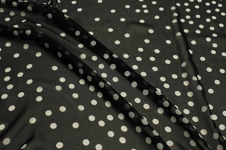 Шифон (н) белый горох на черном - цена 1 500 ₽ У нас самые доступные цены на Шифон в Москве, доставка по всей России - интернет магазин тканей Тессутидея. Артикул товара для заказа - 03-7425. Страна производства ткани – Италия. Ширина этого материала - 150. Состав - Полиамид 100%. Наличие остатков на складе - 9.4 м