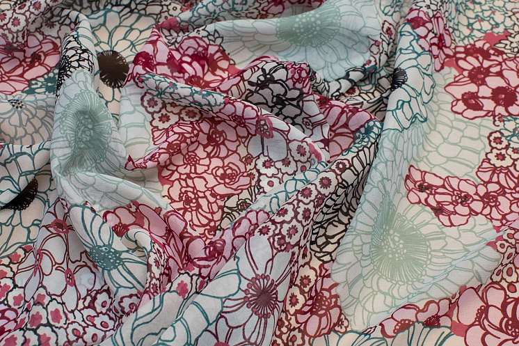 Шифон (н) черно-красно-зеленый цветочный орнамент на белом G.B.Valli - цена 3 200 ₽ У нас самые доступные цены на Шифон в Москве, доставка по всей России - интернет магазин тканей Тессутидея. Артикул товара для заказа - 02-9009. Страна производства ткани – Италия. Ширина этого материала - 140. Состав - Шелк 100%. Наличие остатков на складе - 6 м