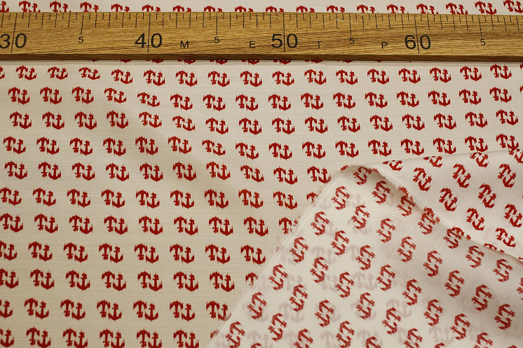 Шифон (н) красные якоря на белом - цена 3 200 ₽ У нас самые доступные цены на Шифон в Москве, доставка по всей России - интернет магазин тканей Тессутидея. Артикул товара для заказа - 10-4053. Страна производства ткани – Италия. Ширина этого материала - 140. Состав - Шелк 100%. Наличие остатков на складе - 8 м