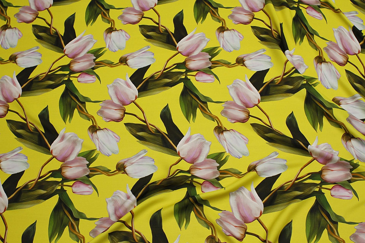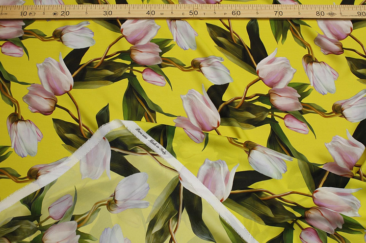 Шифон (н) крупные тюльпаны на ярко-желтом - цена 5 400 ₽ У нас самые доступные цены на Шифон в Москве, доставка по всей России - интернет магазин тканей Тессутидея. Артикул товара для заказа - 10-3699. Страна производства ткани – Италия. Ширина этого материала - 140. Состав - Шелк 100%. Наличие остатков на складе - 3.1 м