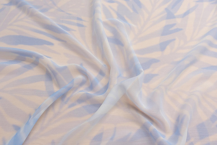 Шифон (н) крупный голубой растительный рисунок на белом - цена 4 200 ₽ У нас самые доступные цены на в Москве, доставка по всей России - интернет магазин тканей Тессутидея. Артикул товара для заказа - 10-2646. Страна производства ткани – Италия. Ширина этого материала - 140. Состав - Шелк 100%. Наличие остатков на складе - 2.2 м
