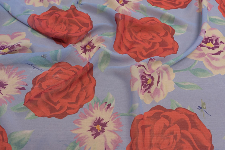Шифон (н) крупный красно-желто-зеленый цветочный рисунок на голубом - цена 3 500 ₽ У нас самые доступные цены на Шифон в Москве, доставка по всей России - интернет магазин тканей Тессутидея. Артикул товара для заказа - 10-2519. Страна производства ткани – Италия. Ширина этого материала - 140. Состав - Шелк 100%. Наличие остатков на складе - 6.5 м