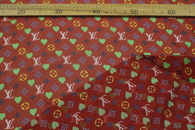 Шифон (н) салатовые сердца и логотип на красно-терракотовом - цена 6 800 ₽ У нас самые доступные цены на Шифон в Москве, доставка по всей России - интернет магазин тканей Тессутидея. Артикул товара для заказа - 10-3961. Страна производства ткани – Италия. Ширина этого материала - 135. Состав - Шелк 100%. Наличие остатков на складе - 2.4 м