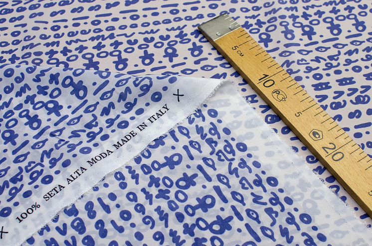 Шифон (н) синий орнамент на белом в стиле Aspesi - цена 3 500 ₽ У нас самые доступные цены на Шифон в Москве, доставка по всей России - интернет магазин тканей Тессутидея. Артикул товара для заказа - 02-8698. Страна производства ткани – Италия. Ширина этого материала - 140. Состав - Шелк 98% эластан 2%. Наличие остатков на складе - 3.5 м