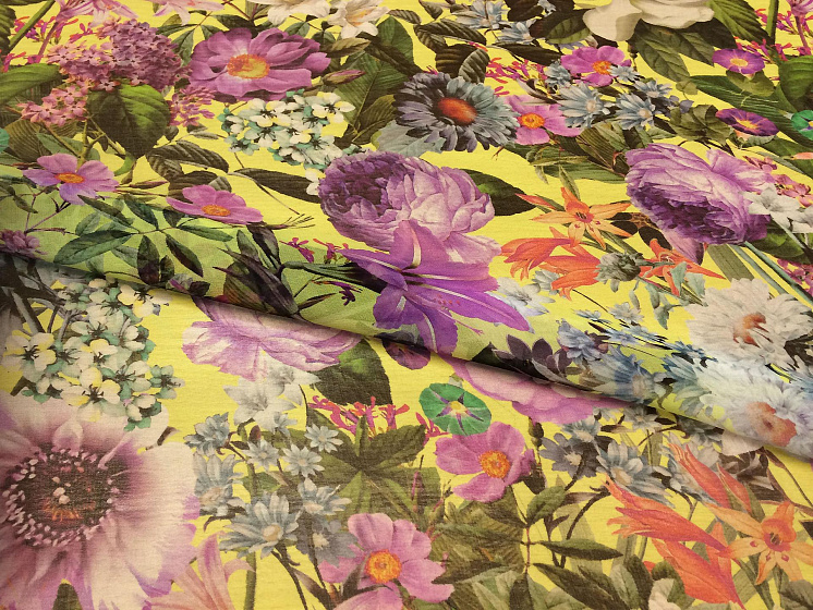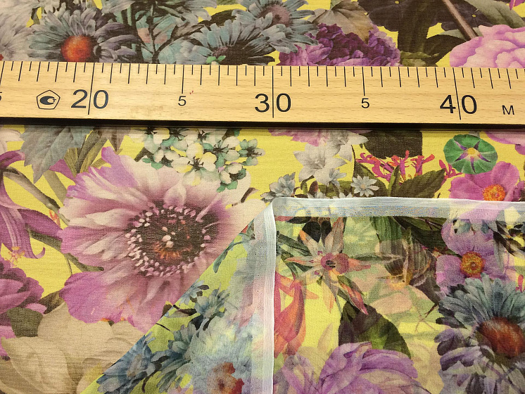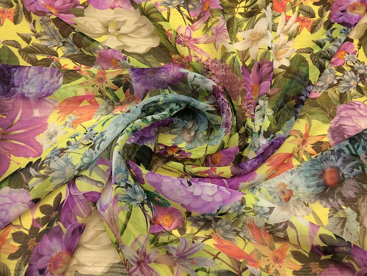 Шифон (н) цветочный орнамент на желтом - цена 3 200 ₽ У нас самые доступные цены на Шифон в Москве, доставка по всей России - интернет магазин тканей Тессутидея. Артикул товара для заказа - 02-7143. Страна производства ткани – Италия. Ширина этого материала - 140. Состав - Шелк 100%. Наличие остатков на складе - 1.3 м