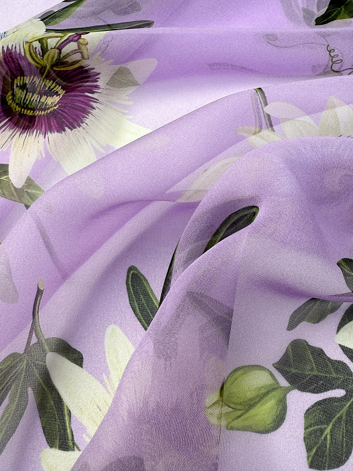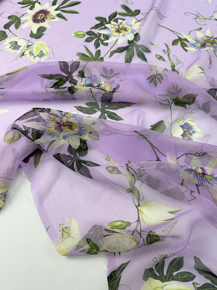 Шифон (н) цветочный рисунок на светло-сиреневом - цена 5 200 ₽ У нас самые доступные цены на в Москве, доставка по всей России - интернет магазин тканей Тессутидея. Артикул товара для заказа - 10-4824. Страна производства ткани – Италия. Ширина этого материала - 140. Состав - Шелк 100%. Наличие остатков на складе - 2.6 м