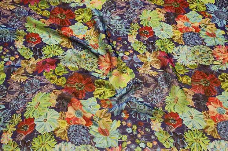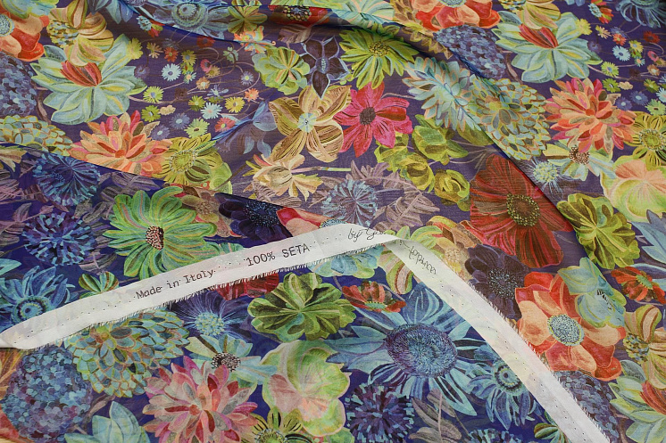 Шифон (н) цветочный рисунок на темно-синем - цена 4 200 ₽ У нас самые доступные цены на Шифон в Москве, доставка по всей России - интернет магазин тканей Тессутидея. Артикул товара для заказа - 10-3541. Страна производства ткани – Италия. Ширина этого материала - 140. Состав - Шелк 100%. Наличие остатков на складе - 2.4 м