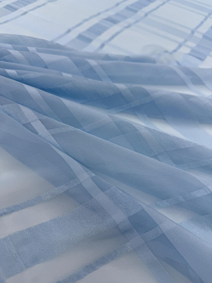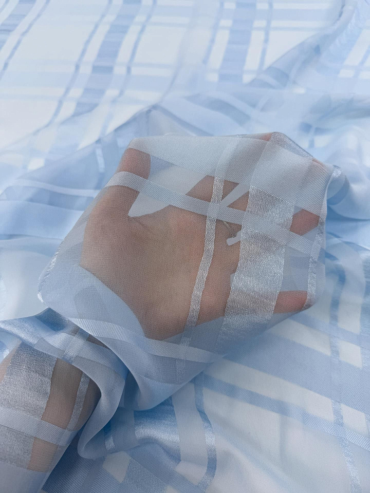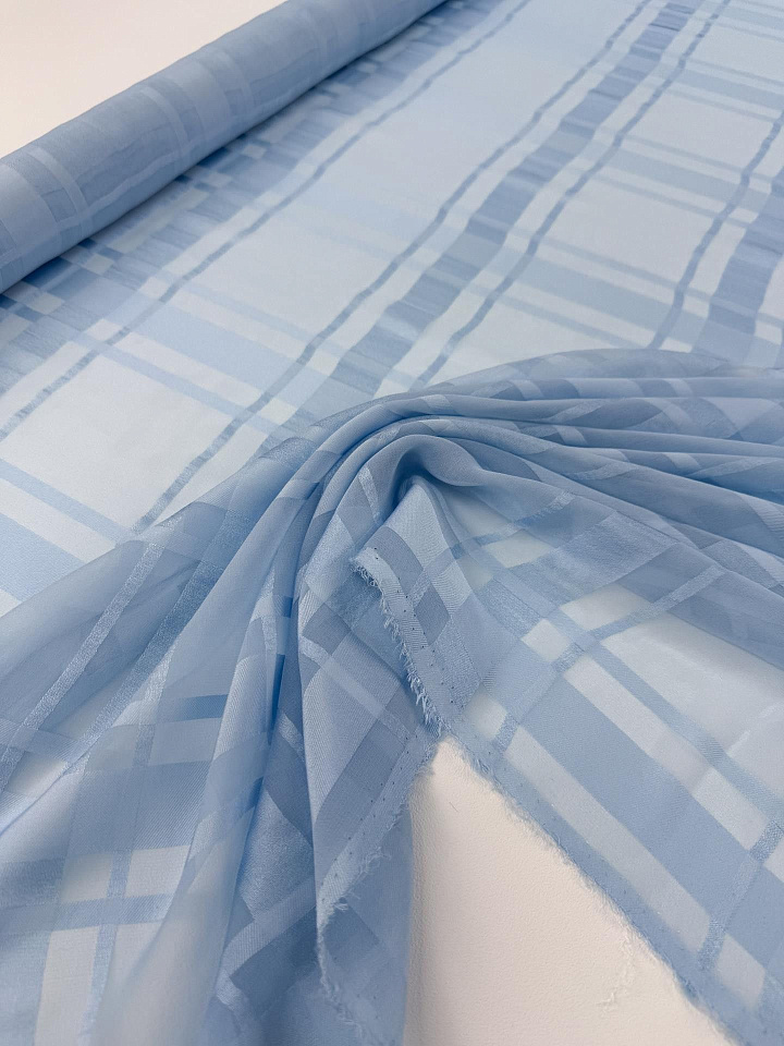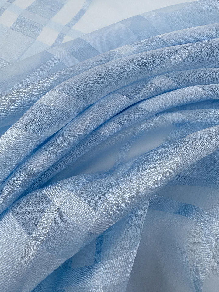 Шифон (н) жаккардовая клетка на голубом - цена 3 200 ₽ У нас самые доступные цены на Шифон в Москве, доставка по всей России - интернет магазин тканей Тессутидея. Артикул товара для заказа - 10-4733. Страна производства ткани – Италия. Ширина этого материала - 140. Состав - Шелк 100%. Наличие остатков на складе - 5.9 м