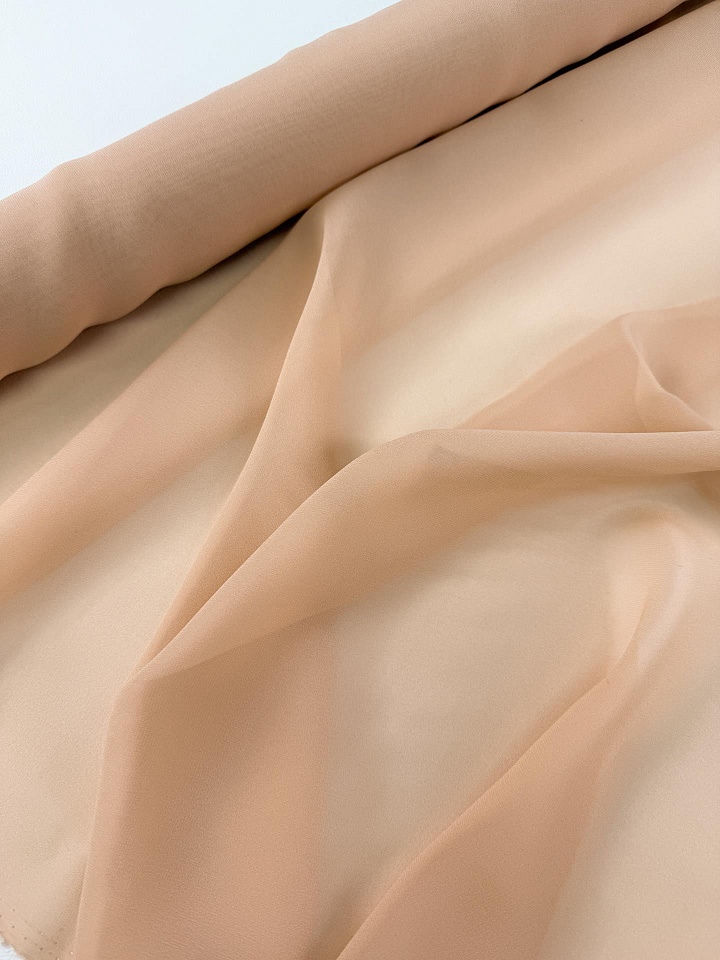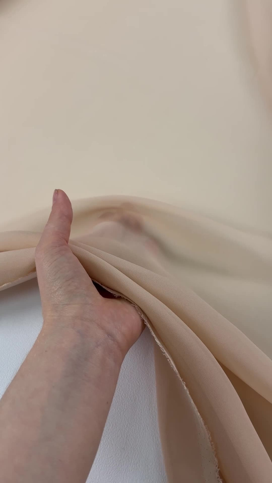 Шифон (о) светло-бежевый - цена 2 400 ₽ У нас самые доступные цены на в Москве, доставка по всей России - интернет магазин тканей Тессутидея. Артикул товара для заказа - 10-4886. Страна производства ткани – Италия. Ширина этого материала - 140. Состав - Шелк 100%. Наличие остатков на складе - 6.5 м