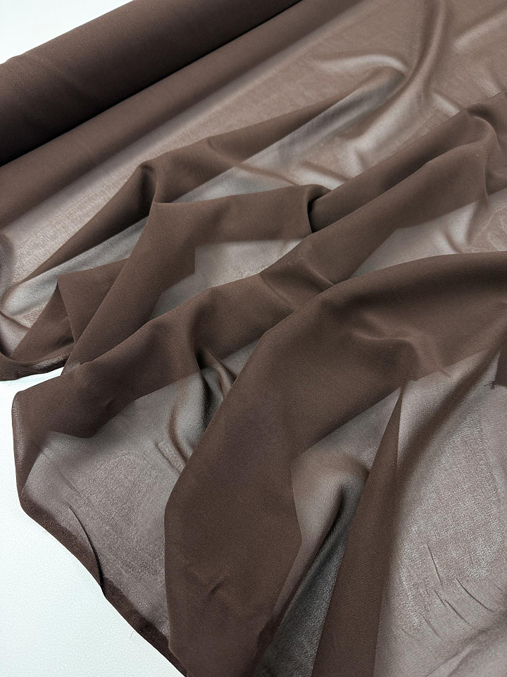 Шифон (о) темно-коричневый - цена 2 800 ₽ У нас самые доступные цены на в Москве, доставка по всей России - интернет магазин тканей Тессутидея. Артикул товара для заказа - 10-4988. Страна производства ткани – Италия. Ширина этого материала - 140. Состав - Шелк 100%. Наличие остатков на складе - 11 м