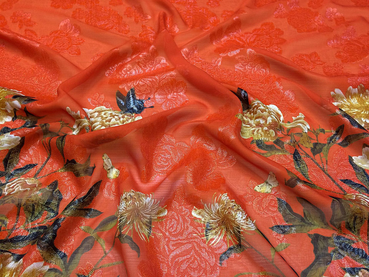 Шифон с люрексом купон (1,6м) (н) цветочный орнамент на черном - цена 3 800 ₽ У нас самые доступные цены на Шифон в Москве, доставка по всей России - интернет магазин тканей Тессутидея. Артикул товара для заказа - 02-7347. Страна производства ткани – Италия. Ширина этого материала - 140. Состав - Шелк 70% люрекс 30%. Наличие остатков на складе - 3.1 м